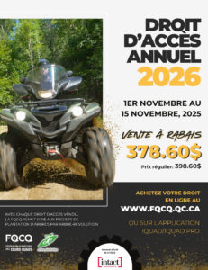 Notez que les tarifs affichés inclus les le coût de l’assurances responsabilités (quadiste et club) ainsi que les taxes.
